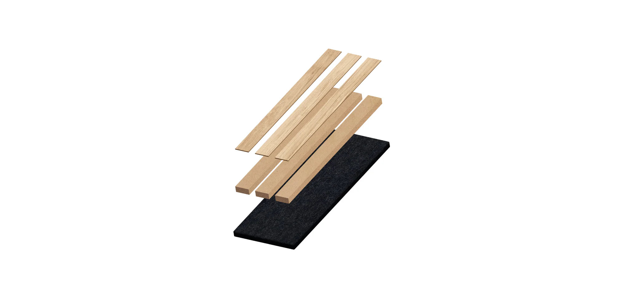The PanelHome slatted panel is crafted with layers of natural wood veneer, durable MDF, and recycled acoustic felt, combining refined aesthetics, functionality, and sustainability in every detail.